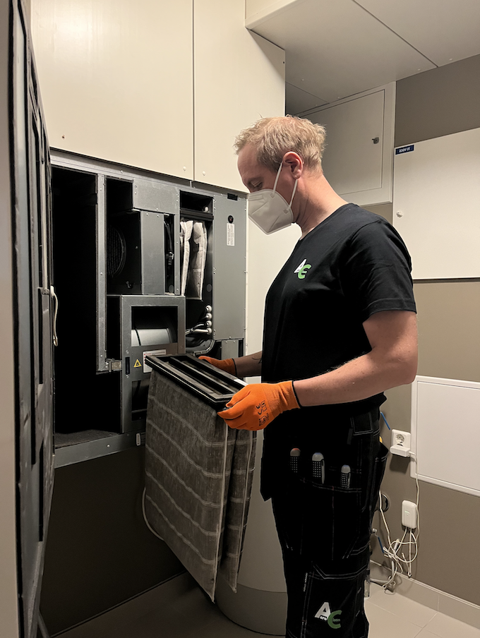 Bytte og vedlikehold av filtre og vifter for å sikre et rent og sunt inneklima.